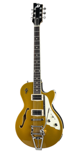 Arguably Duesenberg’s most iconic model, the Starplayer TV is the embodiment of everything that sets the company apart from the pack. From the slim spruce-topped-maple semi-hollowbody construction to the proprietary Diamond Deluxe tremolo unit and Z-Tuners, the Starplayer TV reimagines the golden age of electric guitar building through the lens of the modern performing musician. Plug into the Starplayer TV’s Domino P-90 neck pickup and bridge-position GrandVintage humbucker to traverse the entire tonal spectrum of semi-hollowbody tones, from creamy single-coil cleans to biting overdrive bark. You also get a Medium “D” profile maple neck fit with a compound 12–14-inch radius and 22 jumbo frets to facilitate all manner of fingerboard finesse. It may be inspired by the past, but the Duesenberg Starplayer TV is a decidedly 21st-century 6-string that truly defines the concept of a modern classic.